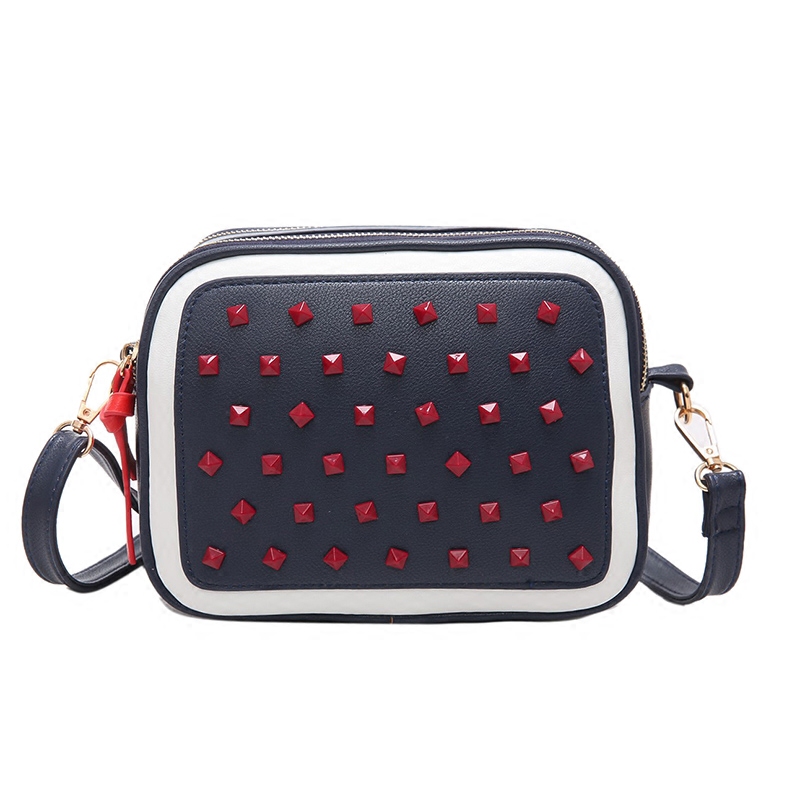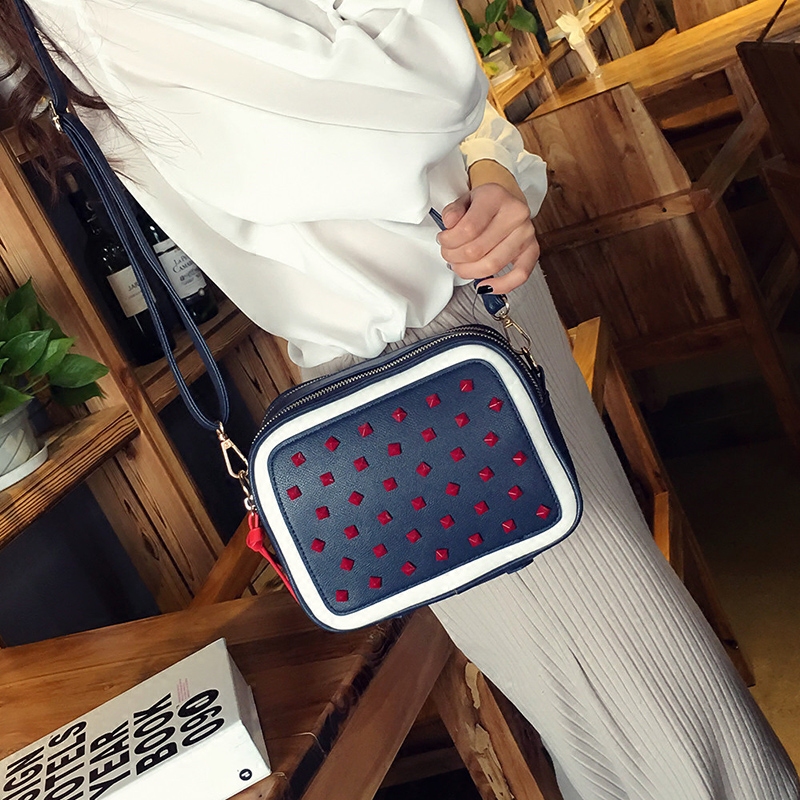包包女新款潮撞色鉚釘小方包韓版百搭斜挎包個性單肩女包小包