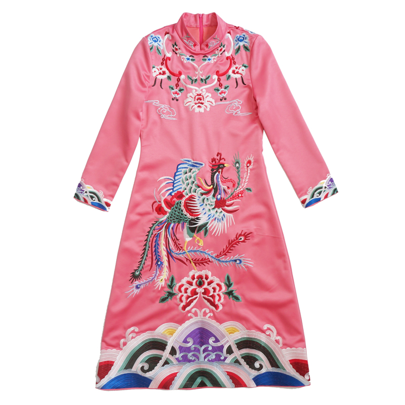 2018春季新款長款改良旗袍時尚復古修身重工刺繡繡花淑女系連衣裙