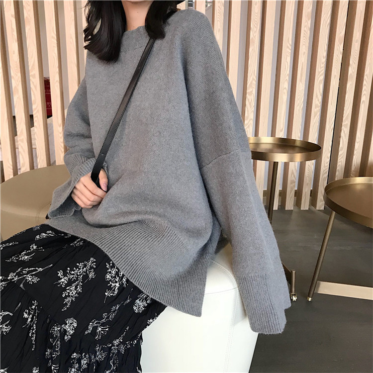 秋裝女2018新款慵懶風寬松百搭簡約套頭針織毛衣純色毛線衫半身裙