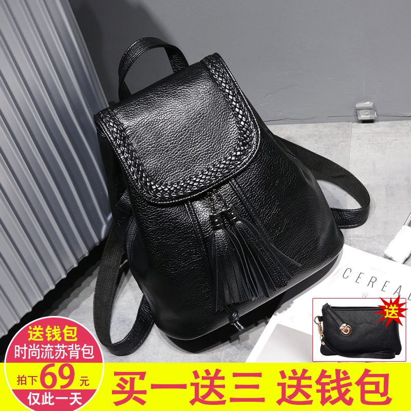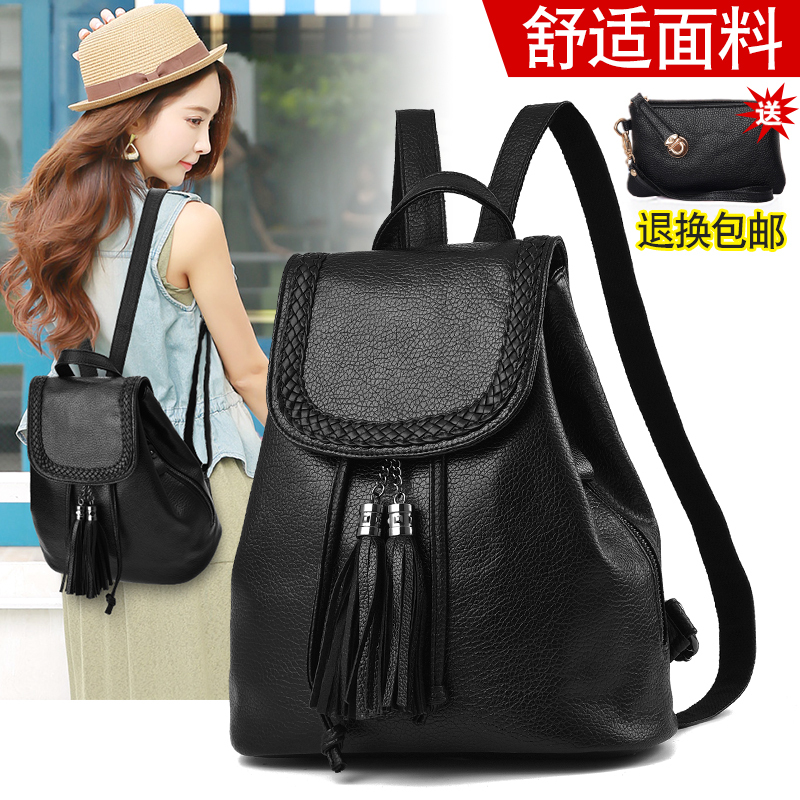 雙肩包女新款韓版潮軟皮質時尚百搭女背包簡約學生小清新書包