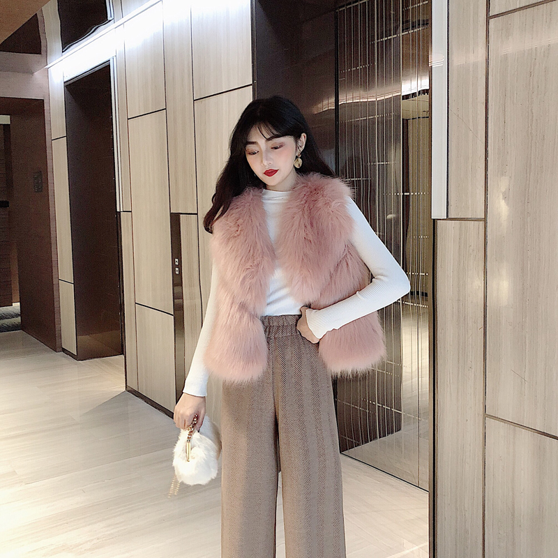 新款氣質名媛毛毛馬甲休閑呢子闊腿褲港風氣質時尚套裝chic兩件套