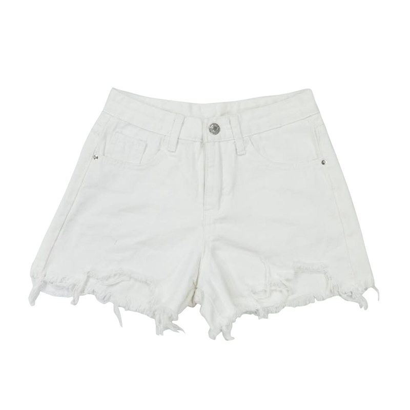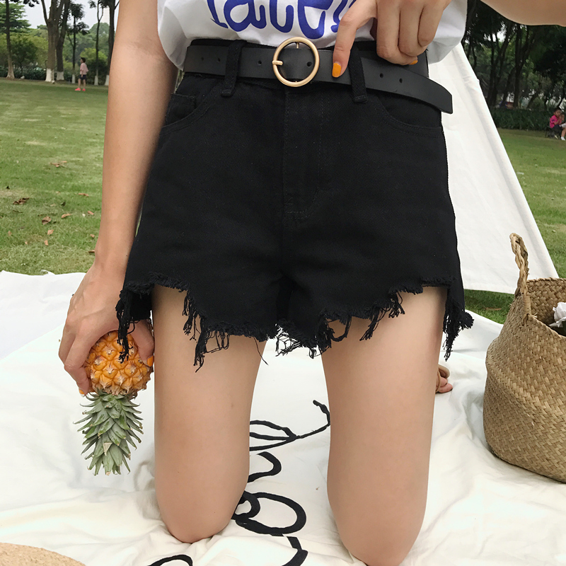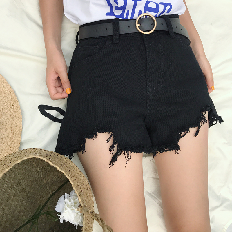 / 春秋女裝韓版高腰闊腿褲寬松顯瘦毛邊缺口白色牛仔褲短褲學生熱褲