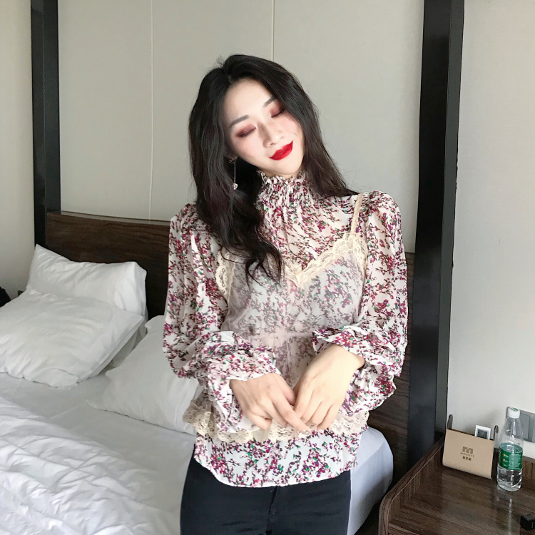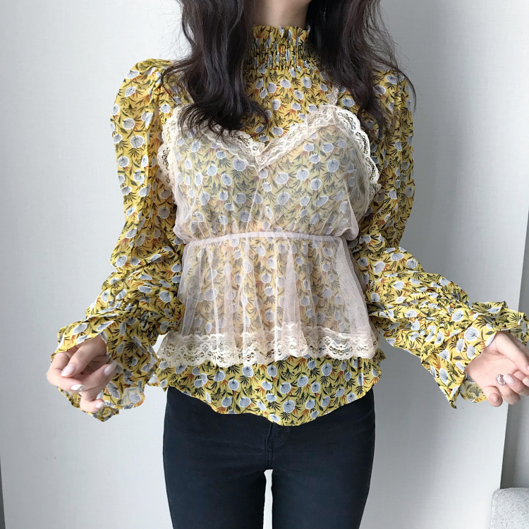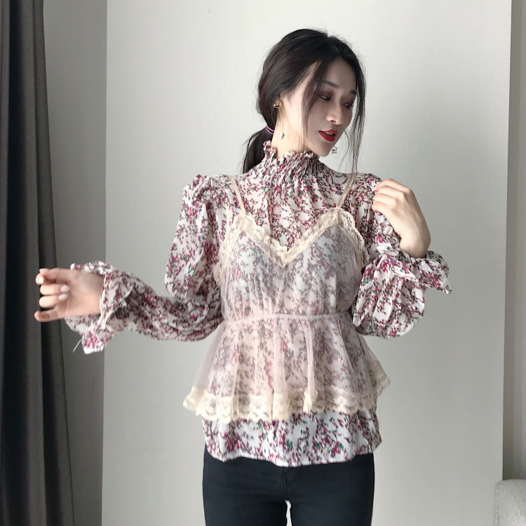 / 港風時尚套裝新款韓版chic雪紡衫上衣網紗內搭吊帶背心兩件套女潮