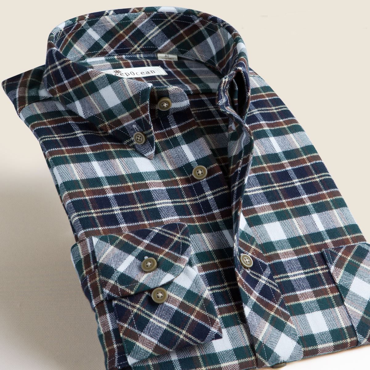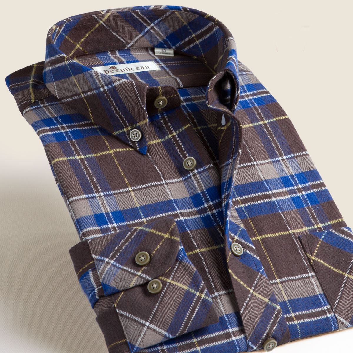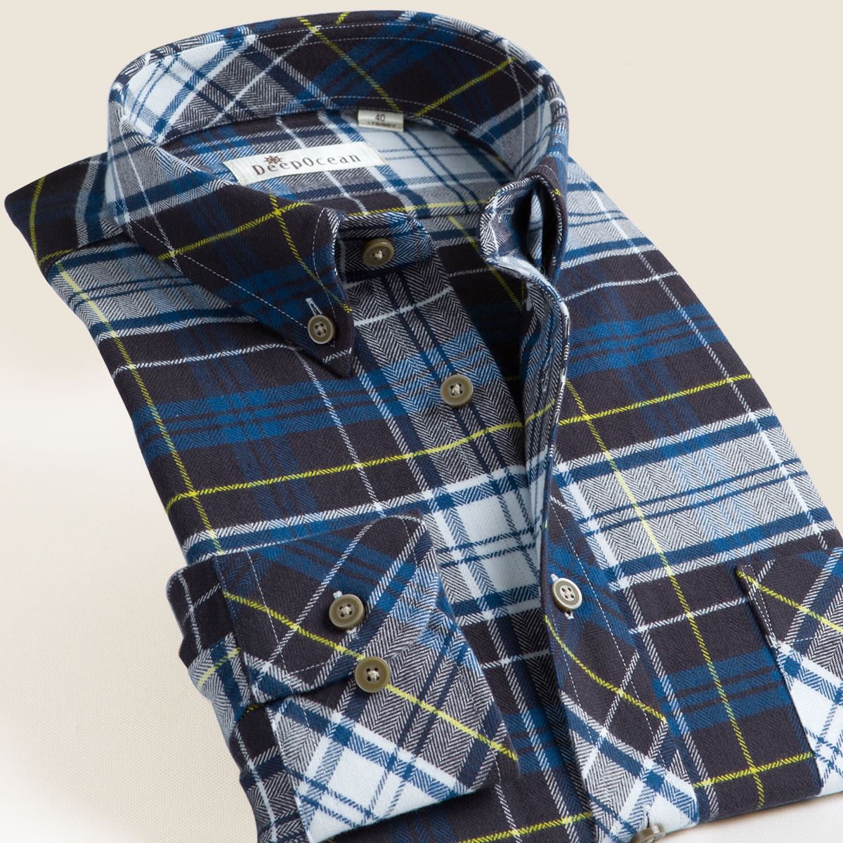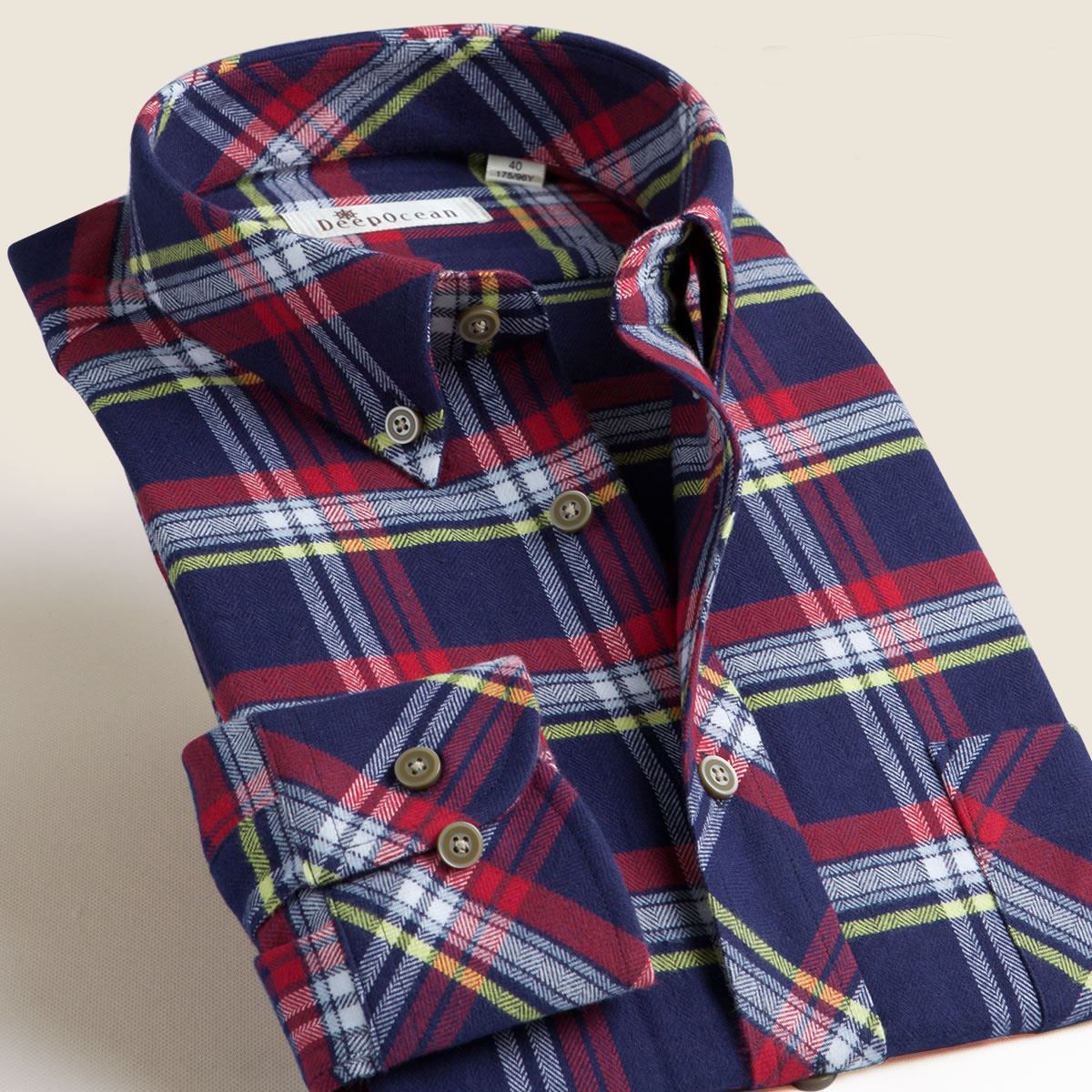 / 深海秋秋加絨加厚保暖男士法蘭絨磨毛長袖襯衫格子修身型精梳襯衣