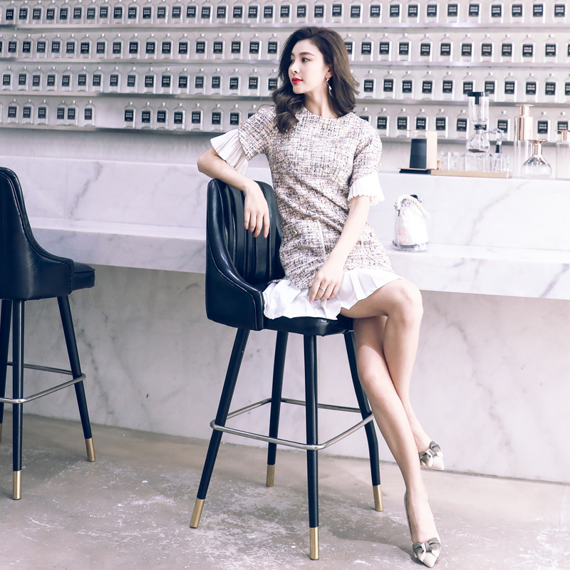 / 時尚圓領連衣裙女秋冬季2018新款韓版寬松花色假兩件荷葉邊裙子