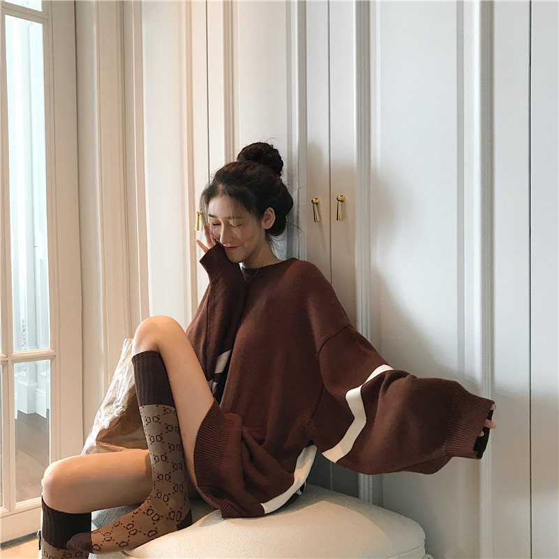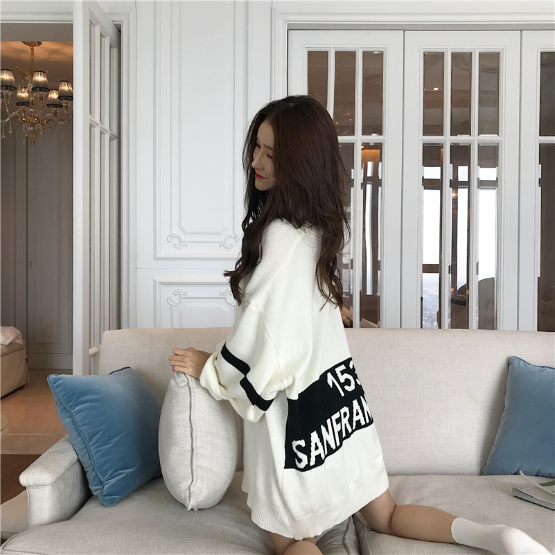 韓版時尚網紅毛衣女2018新款寬松慵懶風中長款字母毛衣套頭上衣潮