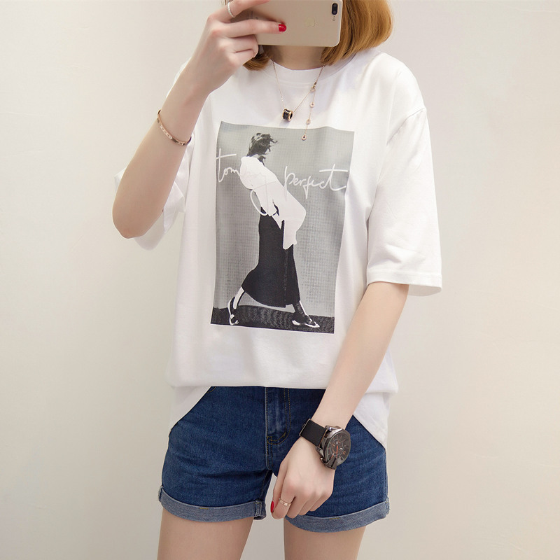 / 短袖t恤女白色上衣寬松打底衫女夏裝韓版印花個性小衫新款潮
