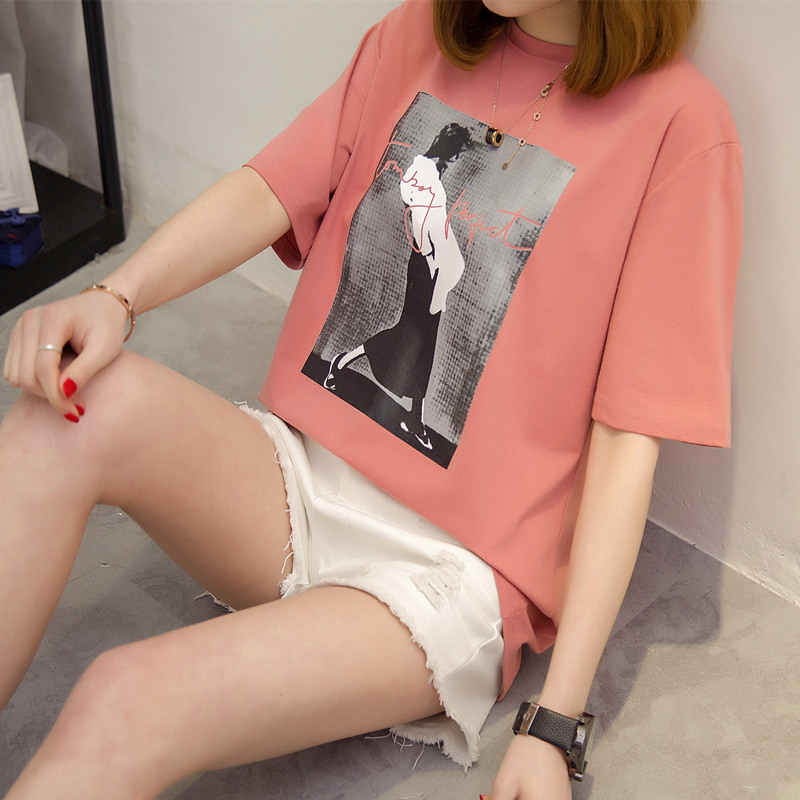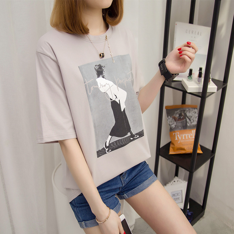 短袖t恤女白色上衣寬松打底衫女夏裝韓版印花個性小衫新款潮