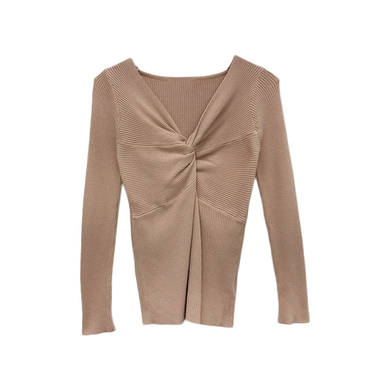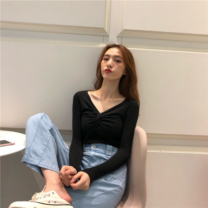 復古chic早秋毛衣慵懶2018新款純色V領交叉長袖針織衫個性打底衫