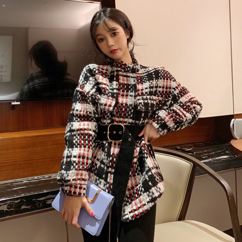 格子呢大衣秋冬女裝2018新款學生流行毛呢外套寬松長袖上衣配腰帶