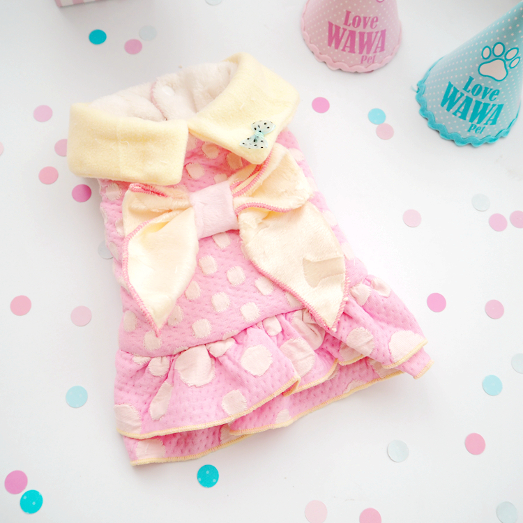 圓點大米裙寵物狗狗衣服秋冬款貴賓泰迪犬貓咪服裝公主裙