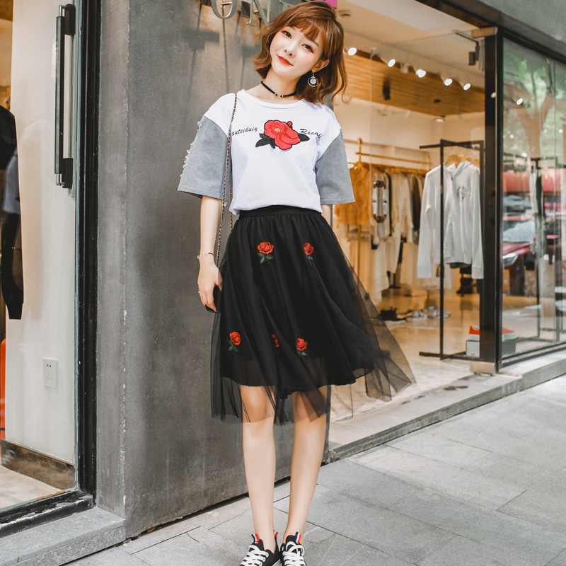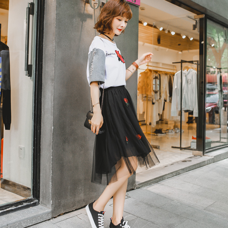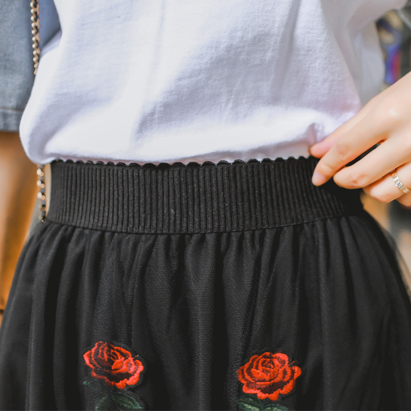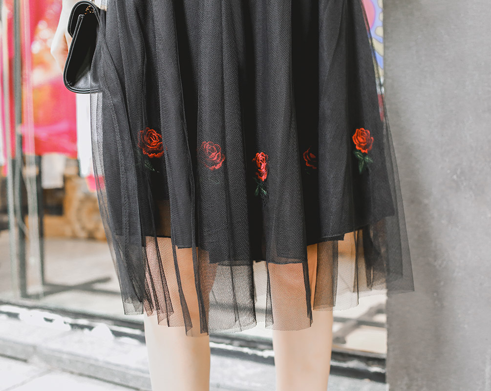 黑色 網紗玫瑰花中長款520