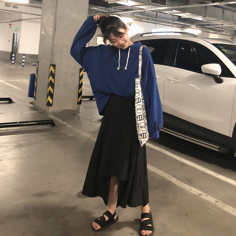 / 秋季韓版女裝休閑套裝連帽套頭長袖衛衣+開叉拼接半身裙兩件套女