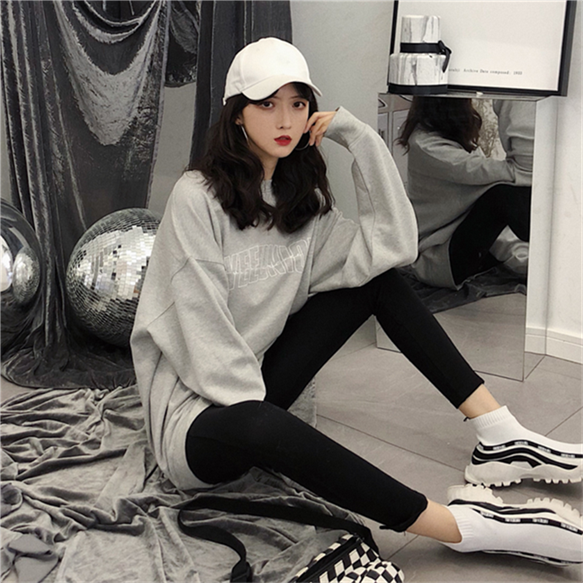 / 時尚百搭遮臀繡花字母套頭衛衣2018新款女長袖韓版寬松顯瘦上衣潮
