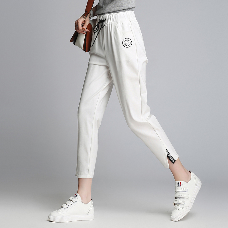 / 薄款運動褲女夏季韓版寬松大碼九分哈倫褲學生顯瘦百搭開叉休閑褲