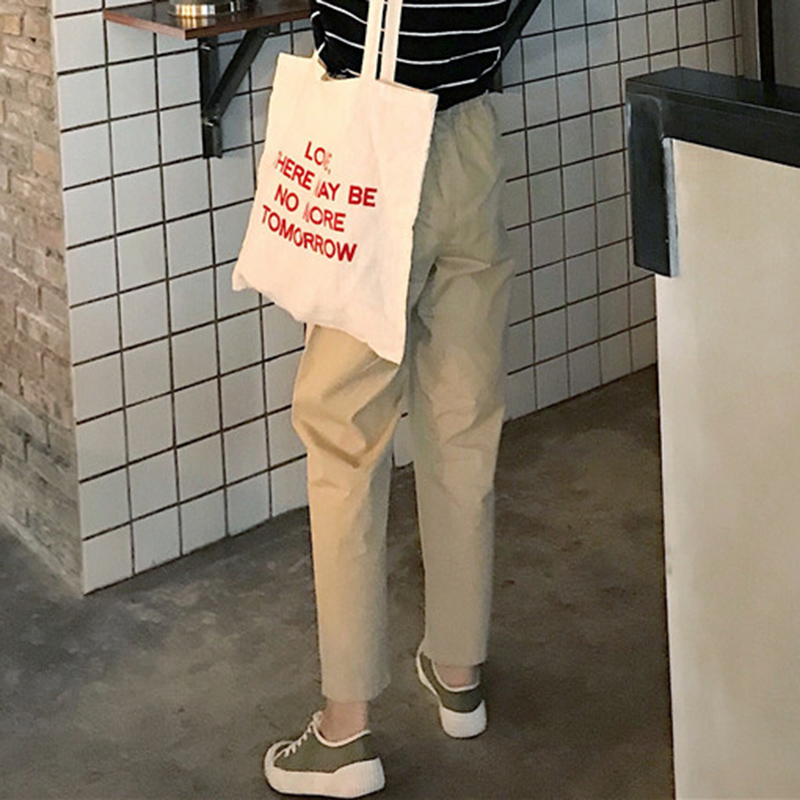 2018早秋韓版松緊腰學生休閑褲寬松復古工裝直筒休閑九分闊腿褲女