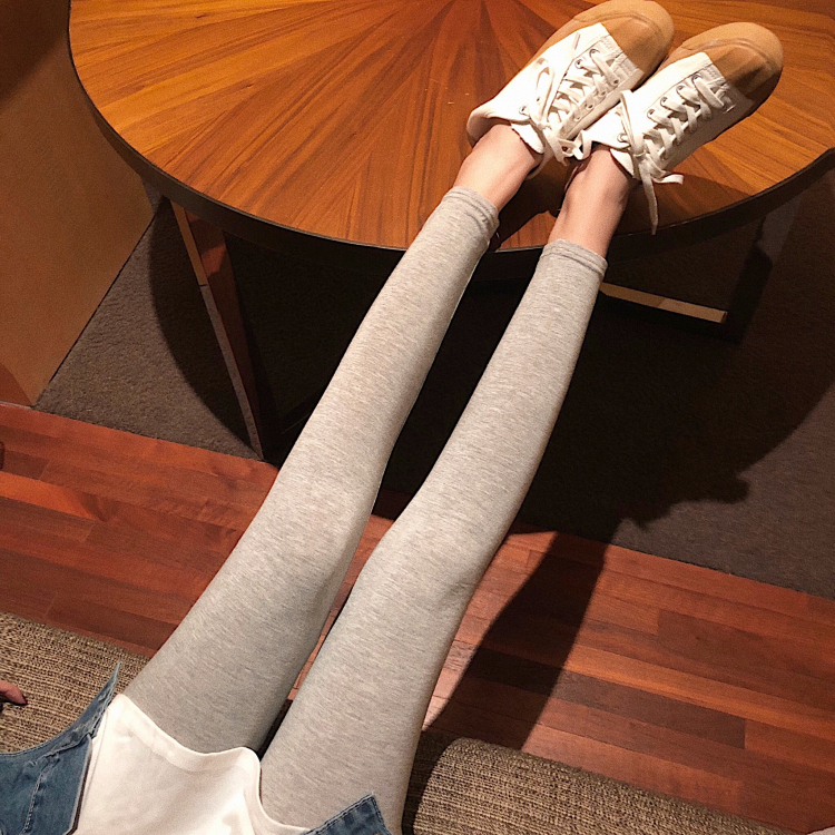 2018新款韓版軟妹針織打底褲女學生灰色長褲修身外穿彈力褲小腳褲