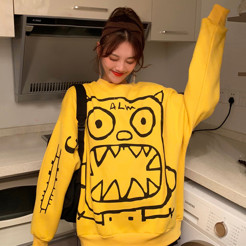 / 秋冬女裝新款卡通印花加絨長袖保暖衛衣韓版chic學生寬松慵懶上衣