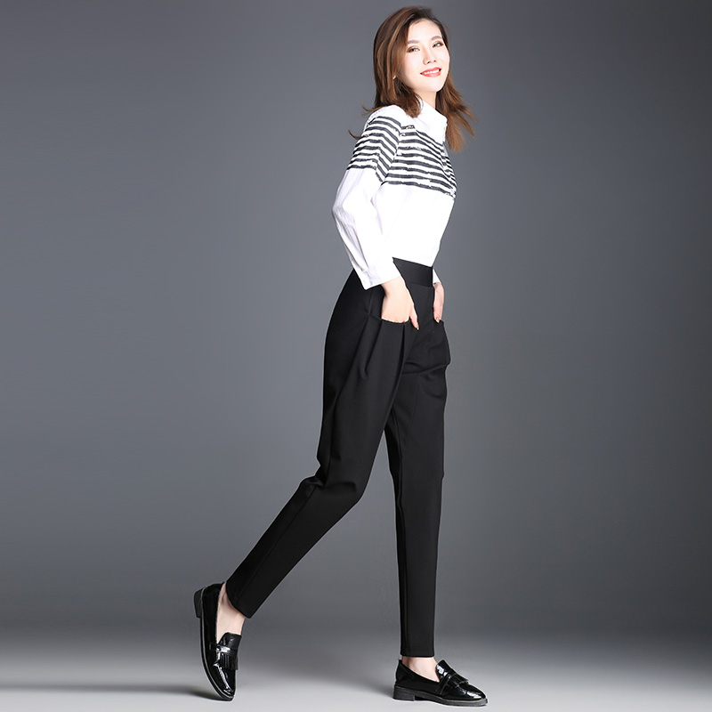 / 哈倫褲女新款春季學生寬松蘿卜褲長褲大碼小腳休閑褲九分褲子