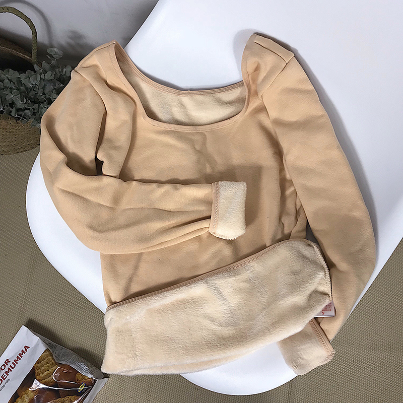 秋冬女裝2018新款韓版加絨保暖長袖T恤修身顯瘦U領打底衫內搭上衣