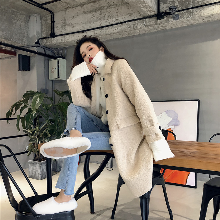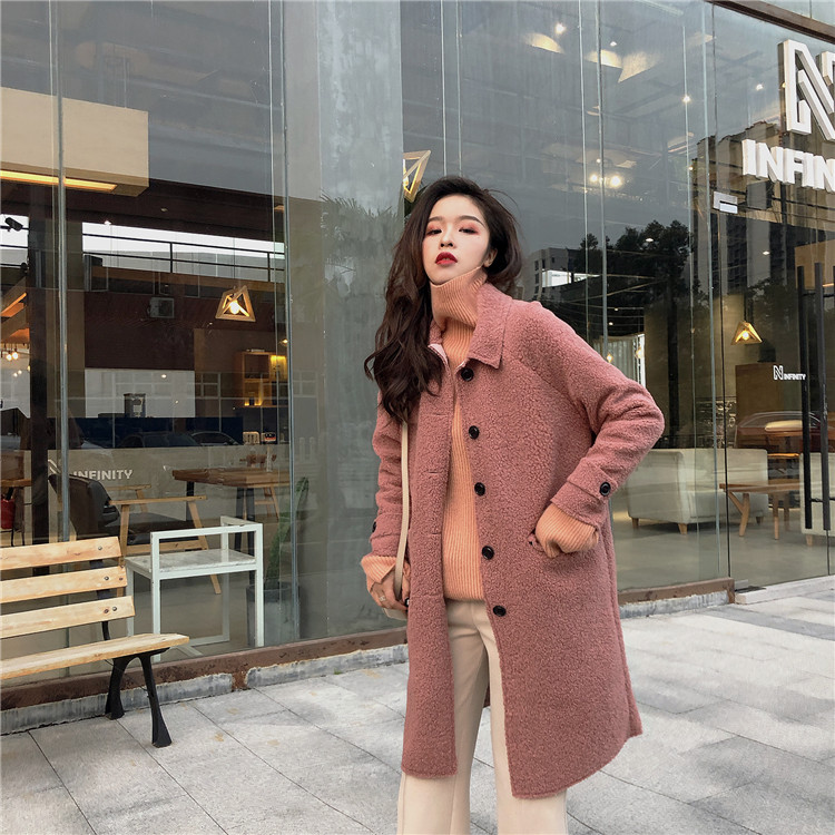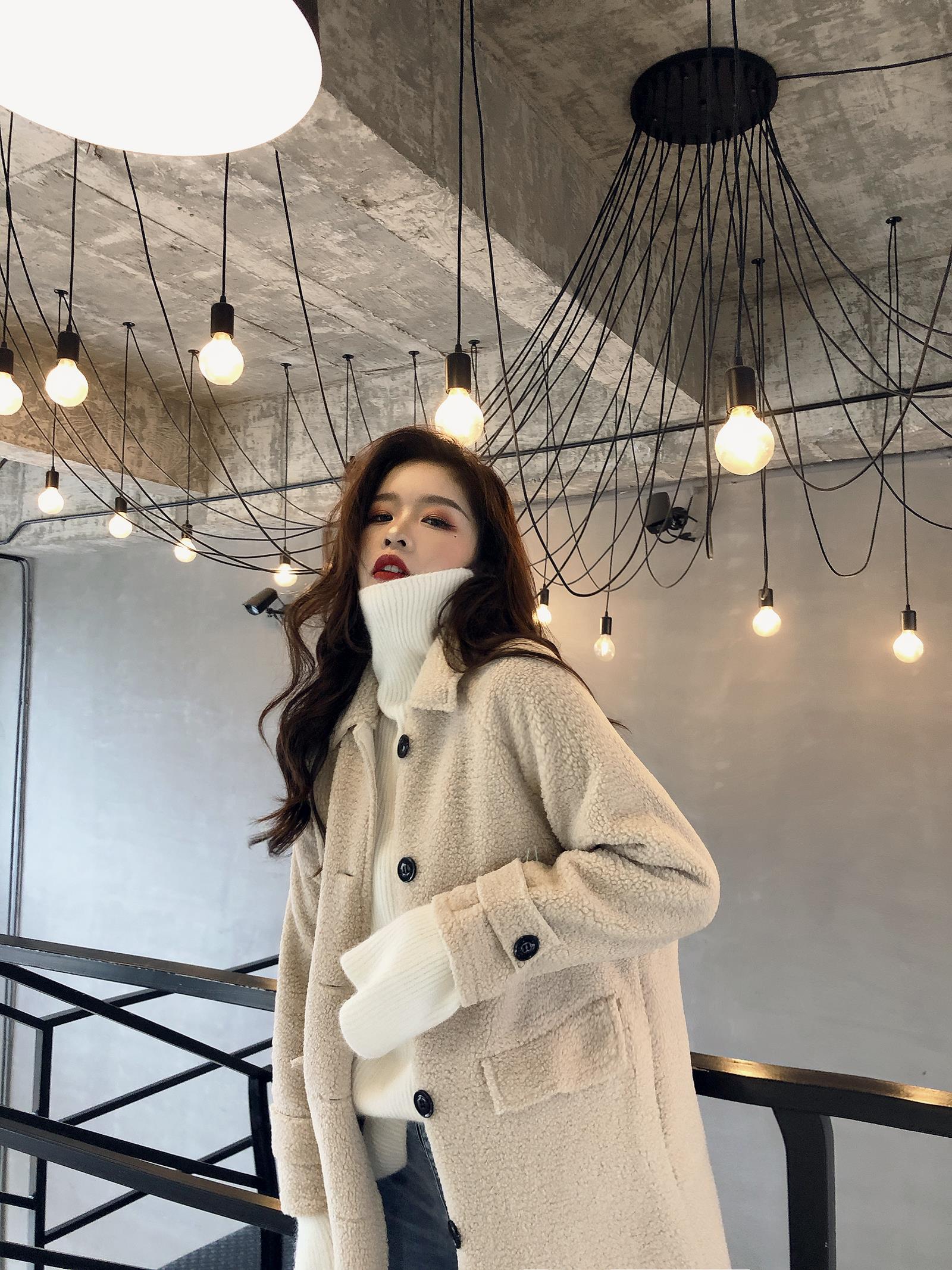 / 復古溫柔冬季新款慵懶加厚單排扣立領羊羔毛外套