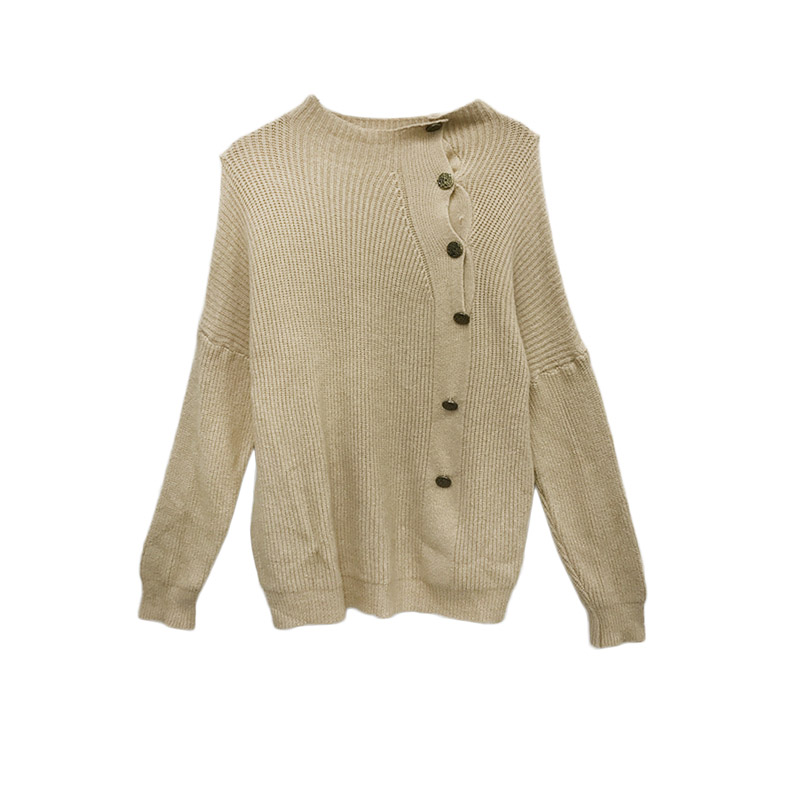 / 韓版純色寬松長袖套裝毛衣女2018新款時尚個性扣子坑條針織衫上衣