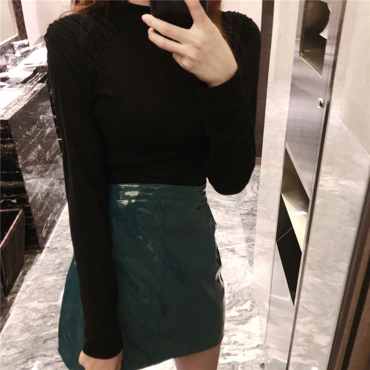 / 港味修身高腰顯瘦亮面漆皮百搭包臀短裙皮裙女2018新款秋季半身裙