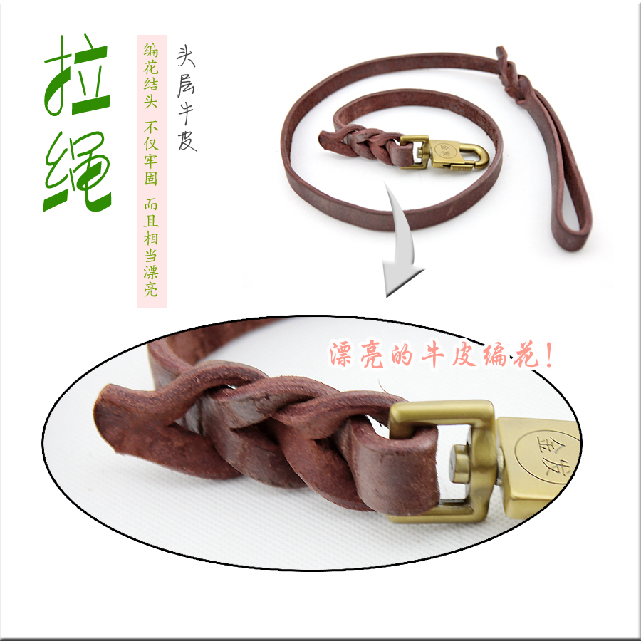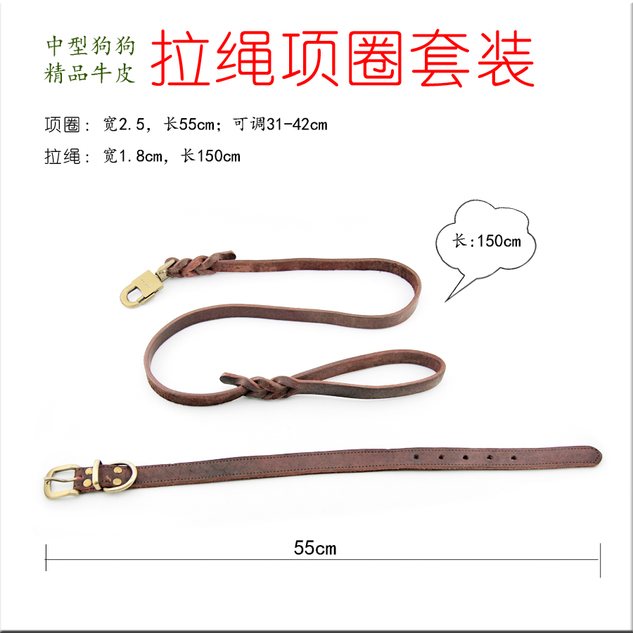 / 頭層年皮純牛皮1.8手拉牽繩中型犬真皮德牧牽繩項圈套裝狗帶包郵