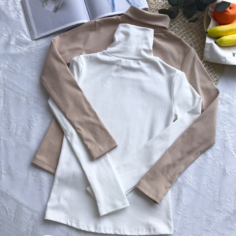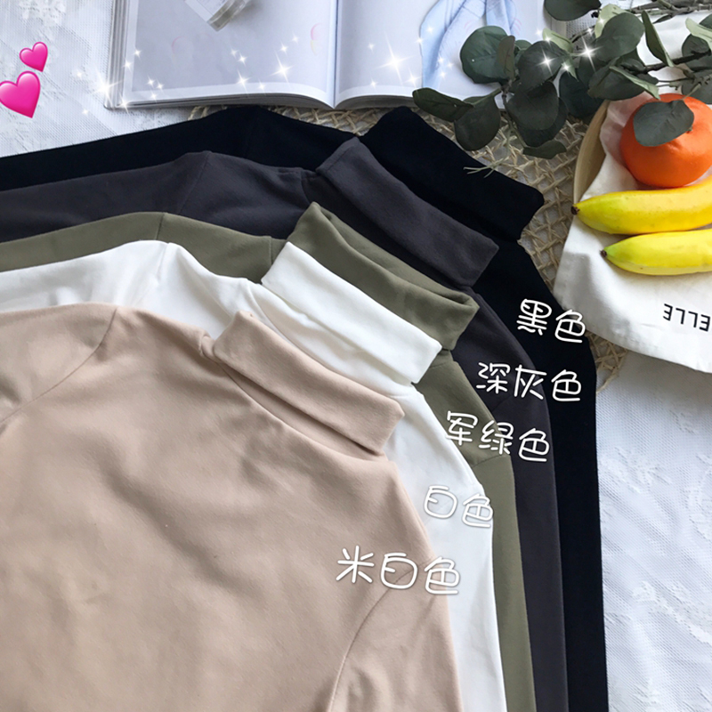 學生高領打底衫女冬裝2018新款韓版修身顯瘦純色內搭長袖T恤上衣
