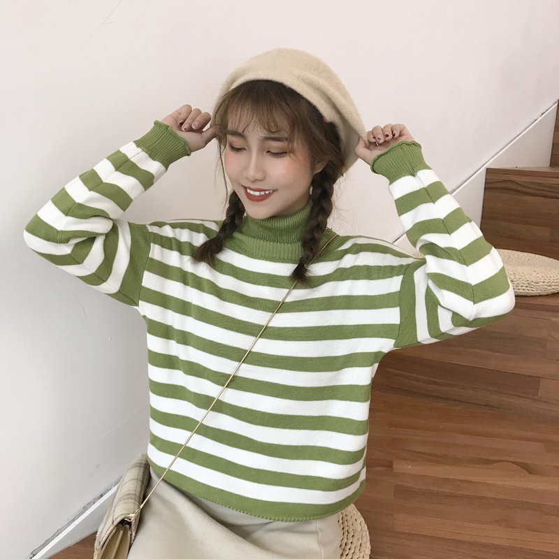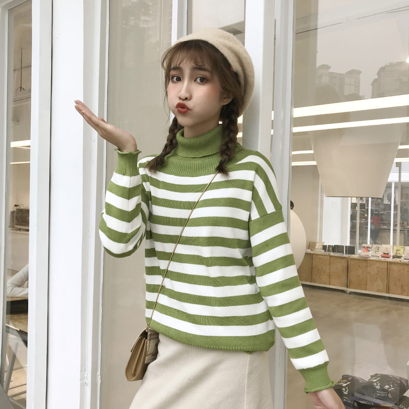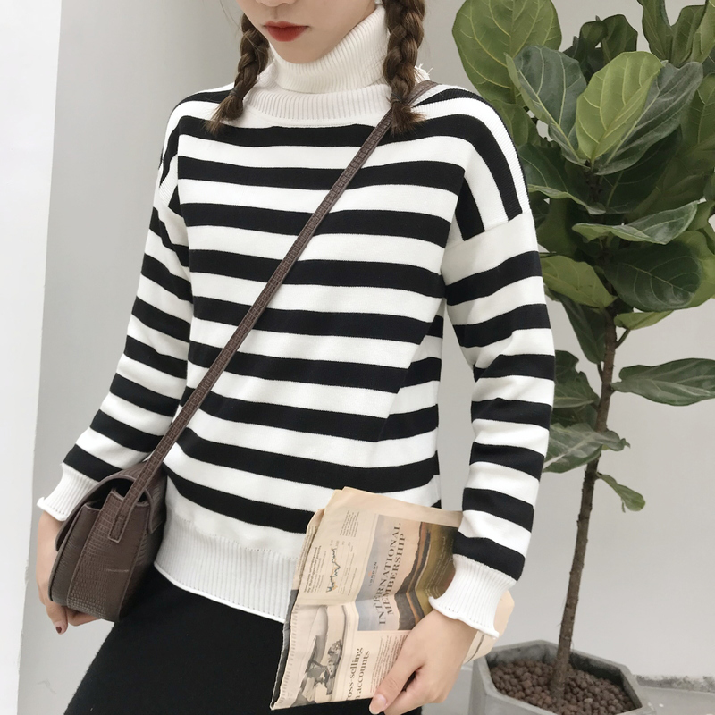秋冬女裝2018新款韓版百搭套頭長袖針織衫學生寬松條紋毛衣外套潮