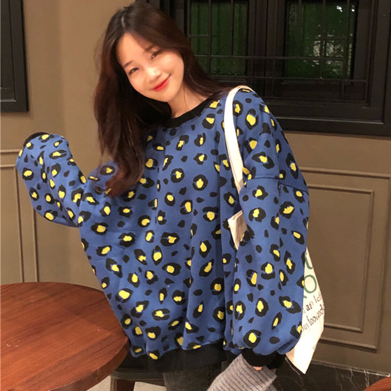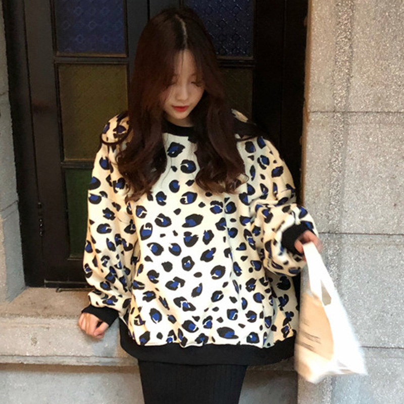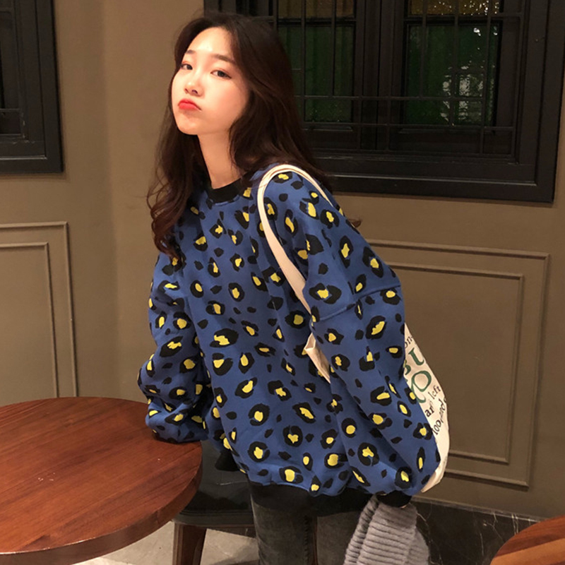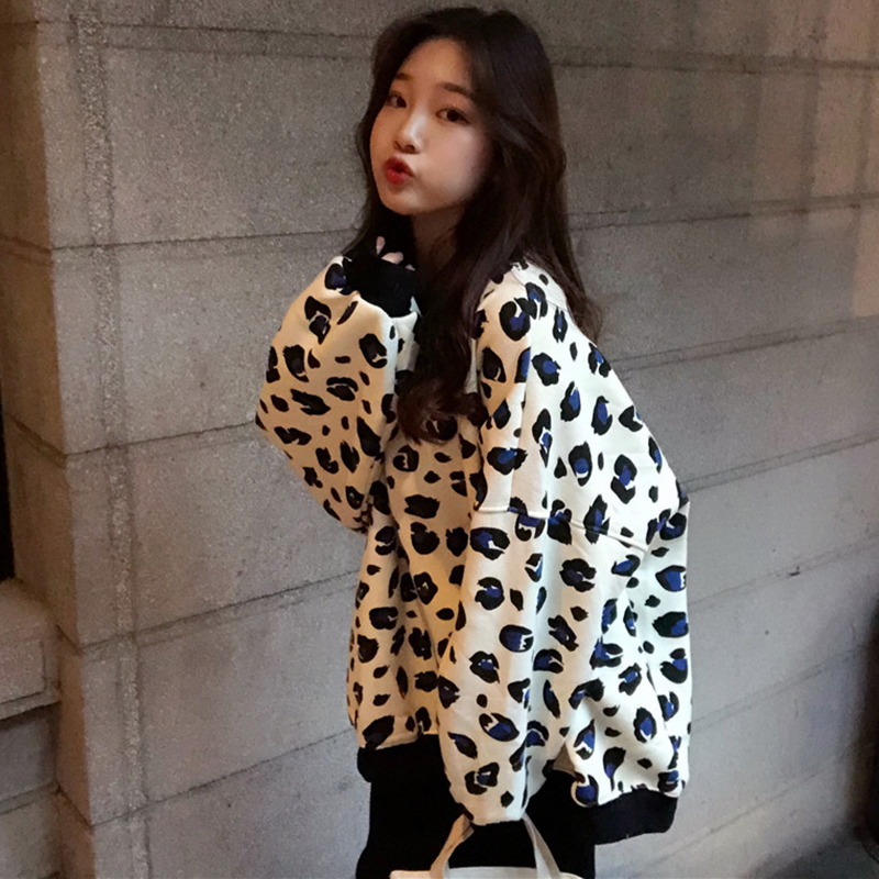 秋冬女裝2018新款韓版時尚寬松豹紋印花加絨衛衣學生寬松長袖外套