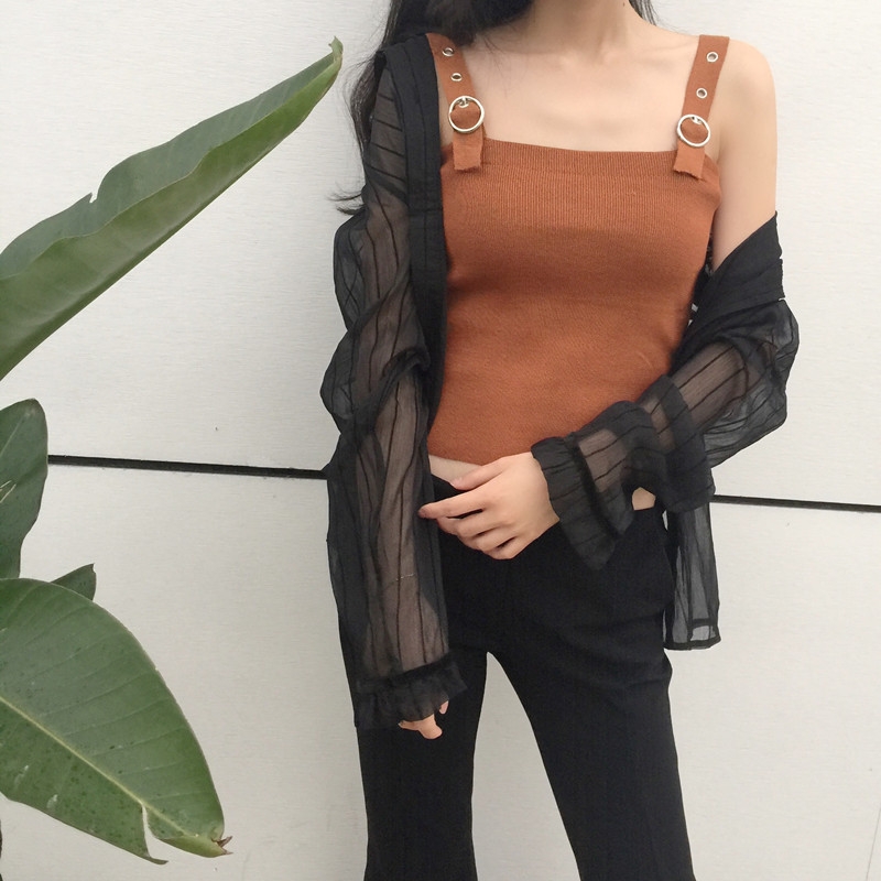 / 春夏新款女裝修身百搭圓環設計可調節肩帶短款露臍小背心打底吊帶