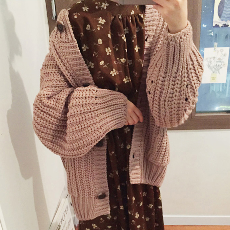 / 保暖長袖毛衣外套秋裝女2018新款單排扣針織開衫學生休閑寬松上衣