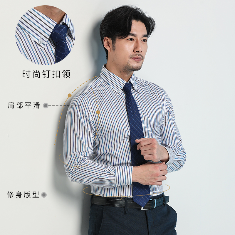 / 秋季條紋襯衫男長袖寸衫純棉免燙修身韓版潮流帥氣男士襯衣青年