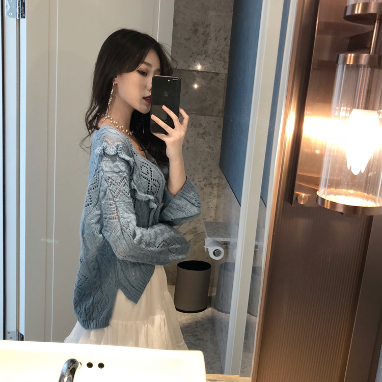 / 秋裝新款韓版木耳邊V領氣質毛衣超仙蕾絲蛋糕裙港風chic時尚套裝