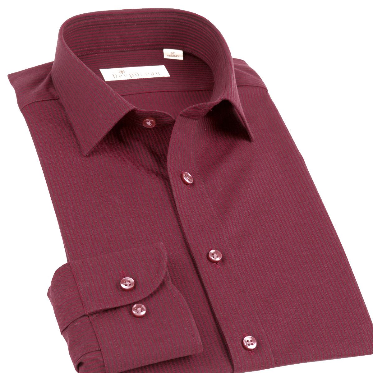 / 秋新款紫紅條紋方領長袖男襯衫棉羊毛舒適輕薄保暖免燙男裝襯衣