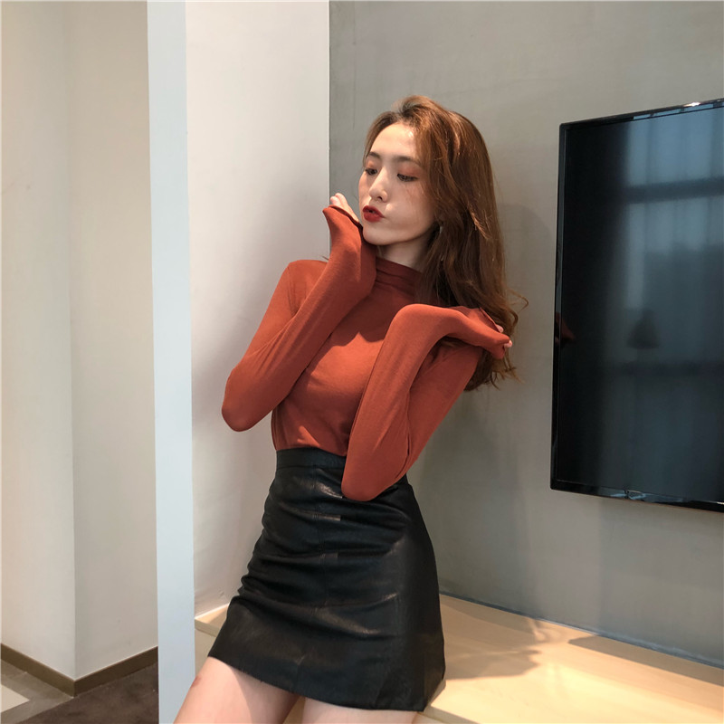 / 秋冬新款修身復古韓版chic風基礎款百搭顯瘦高領純色打底衫t恤女