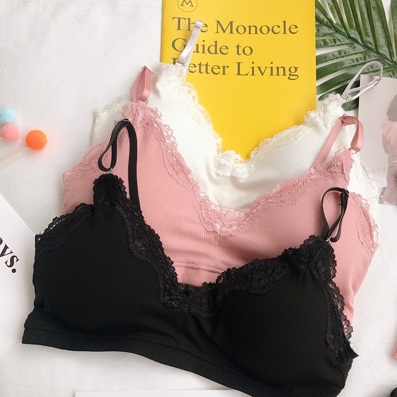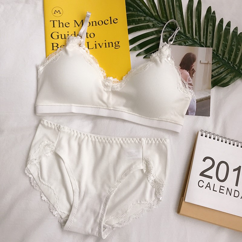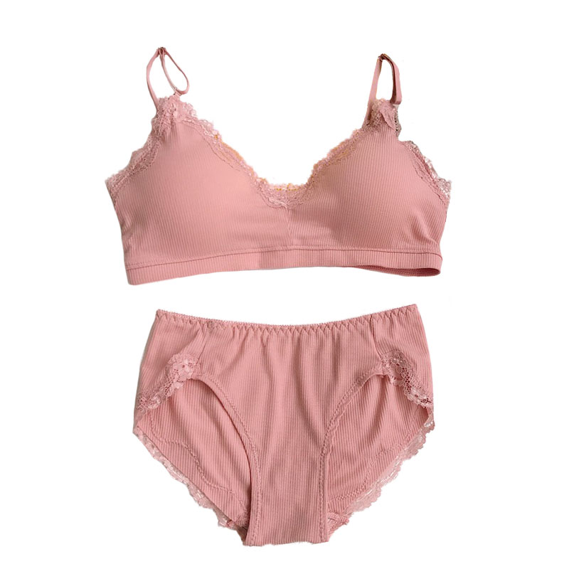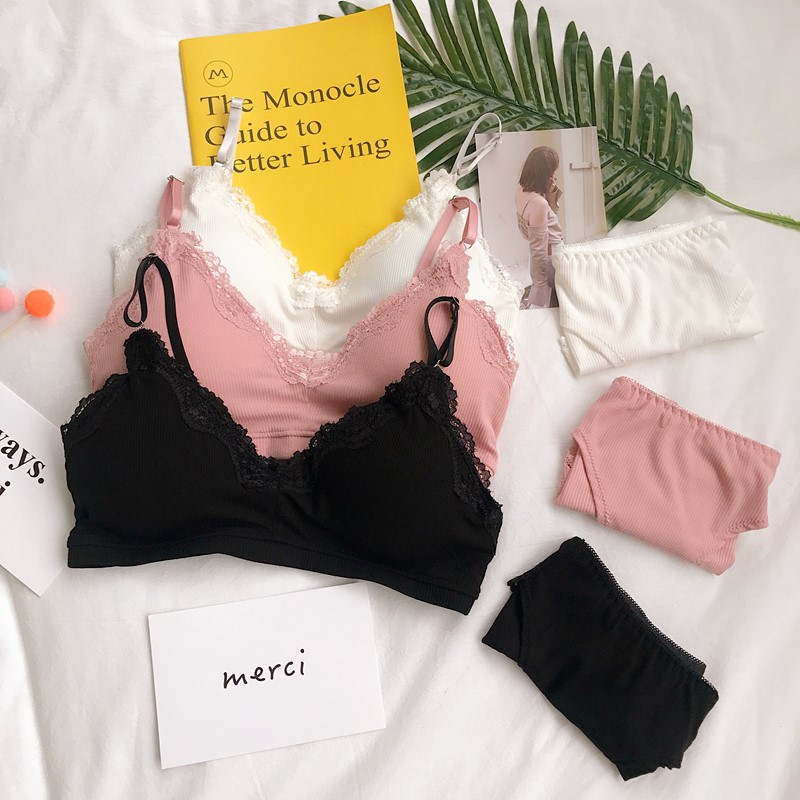 / 韓版蕾絲邊親膚少女文胸短款女士胸罩學生上衣內衣內褲兩件套套裝