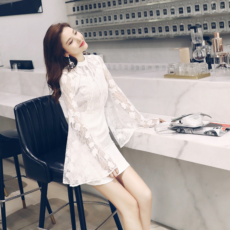 名媛氣質2018早秋新款黑色赫本連衣裙蕾絲拼接包臀禮服小黑裙
