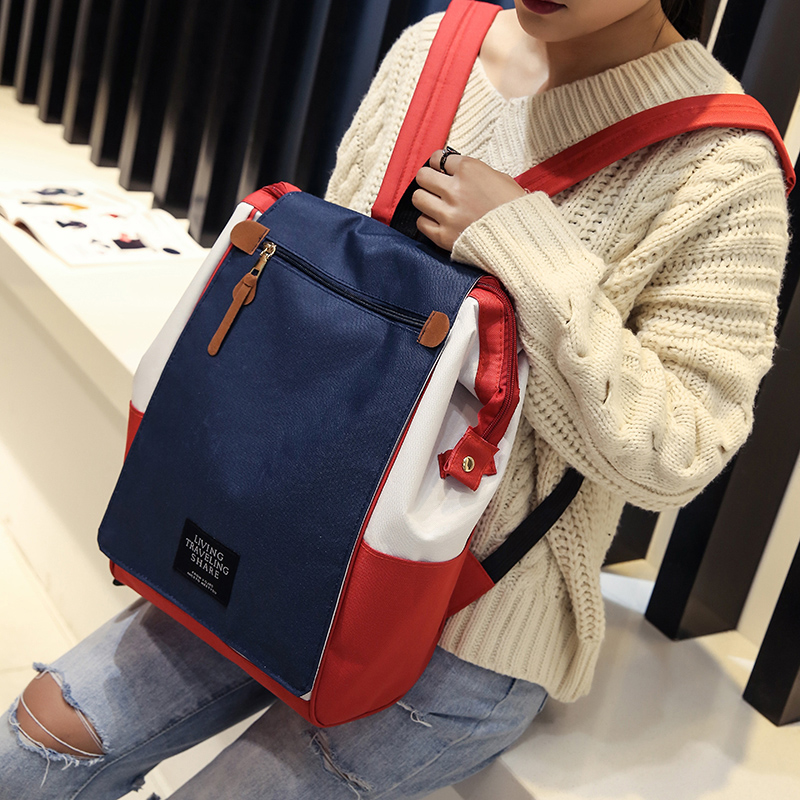 17拼色大容量旅行背包電腦包學院風高中學生書包男女通用背包