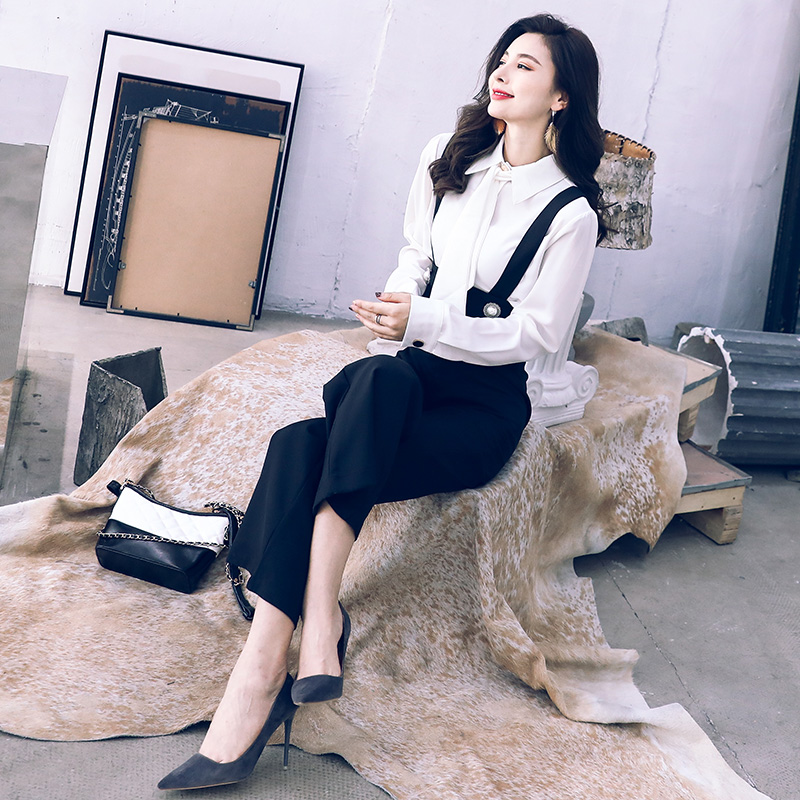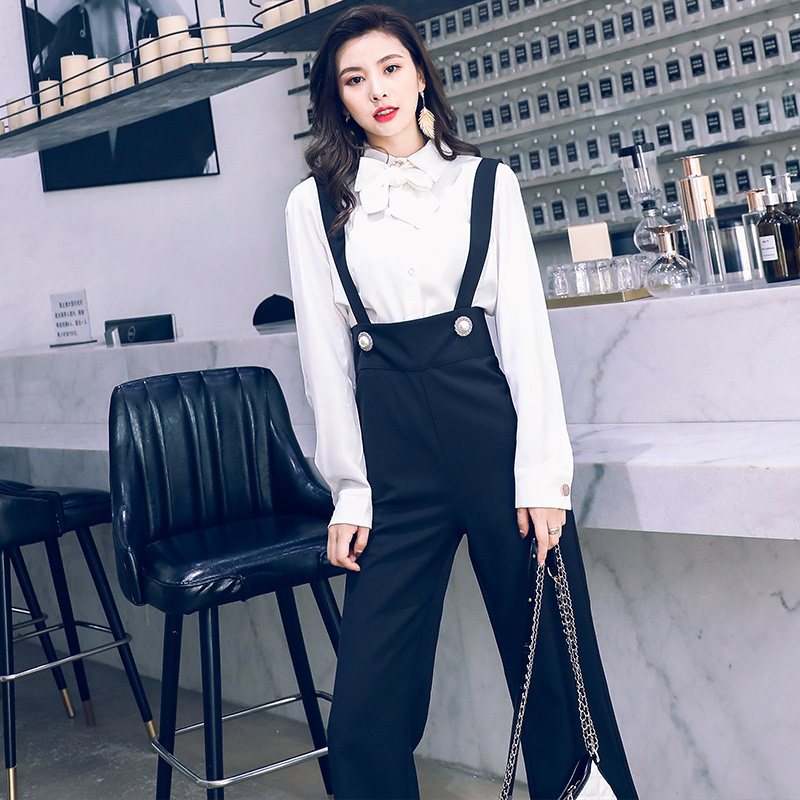 / 2018新款秋冬裝兩件套網紅女裝韓版顯瘦高腰背帶褲時髦套裝潮