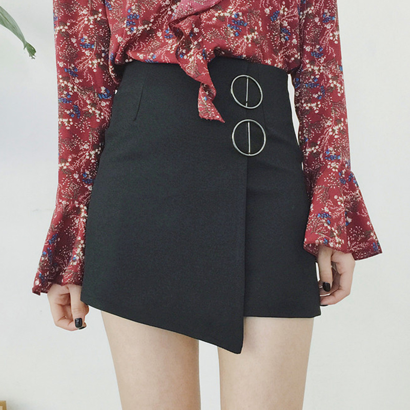 / 氣質A字黑裙子秋裝女2018新款韓范個性不規則包臀短裙高腰半身裙