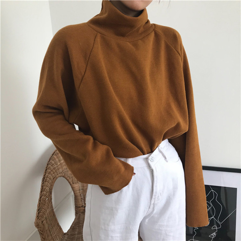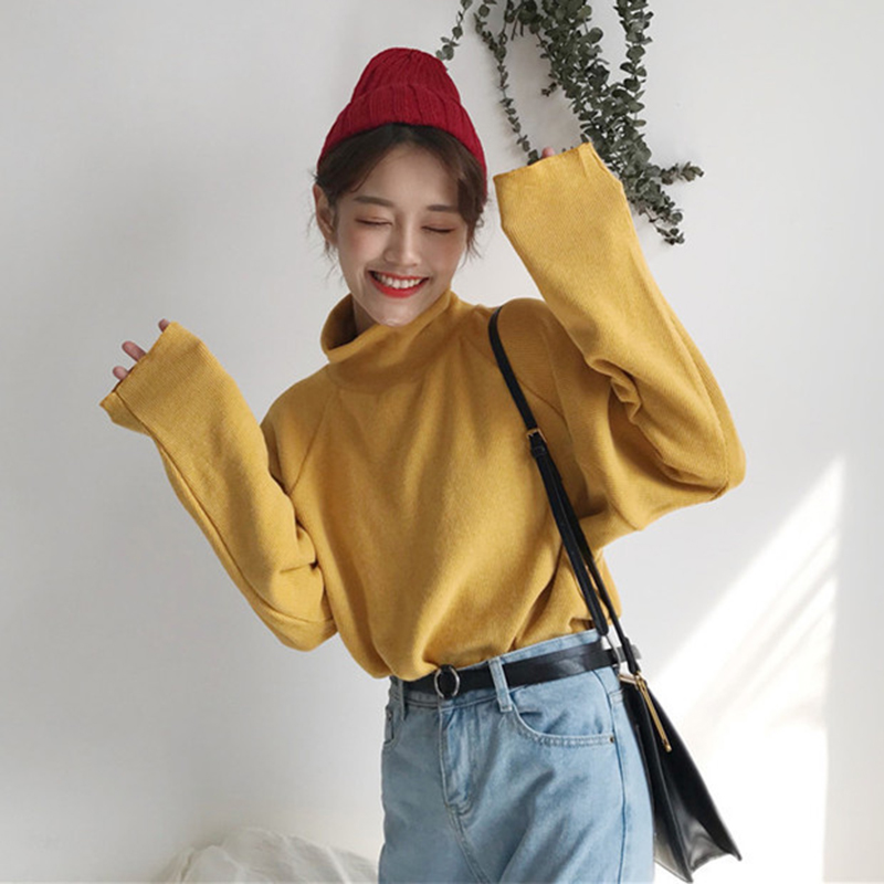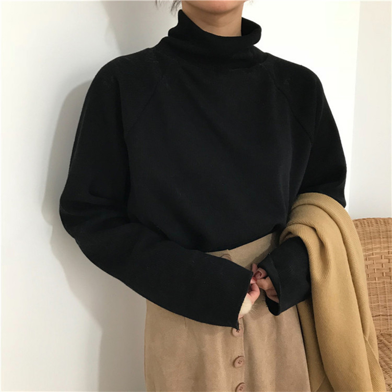 學生寬松顯瘦打底衫女秋裝2018新款休閑韓版高領白色長袖T恤上衣