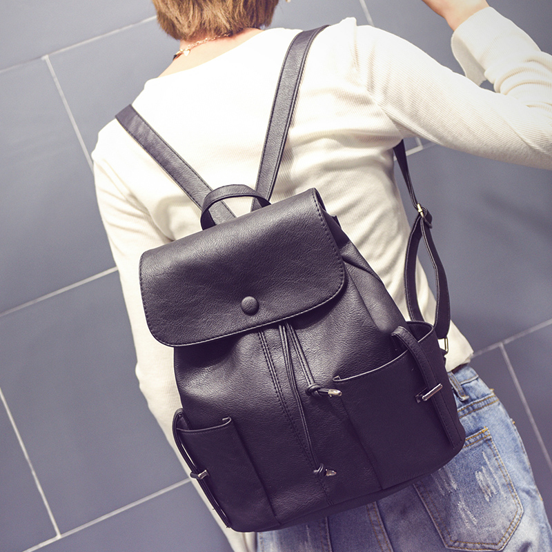 新款軟皮雙肩包日韓版潮女包雙兜旅行背包休閑學院風學生書包