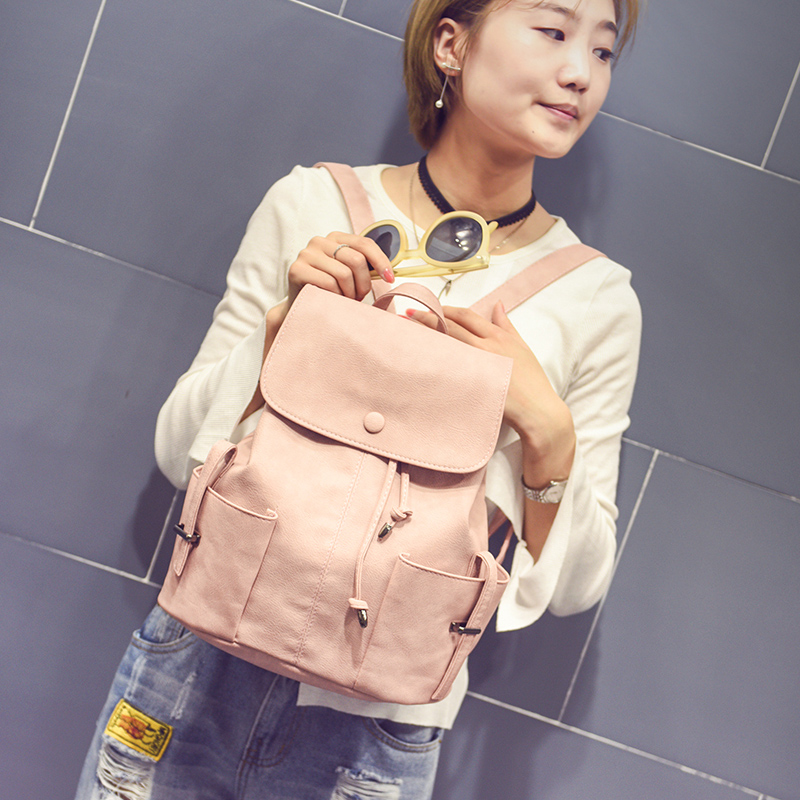 / 新款軟皮雙肩包日韓版潮女包雙兜旅行背包休閑學院風學生書包