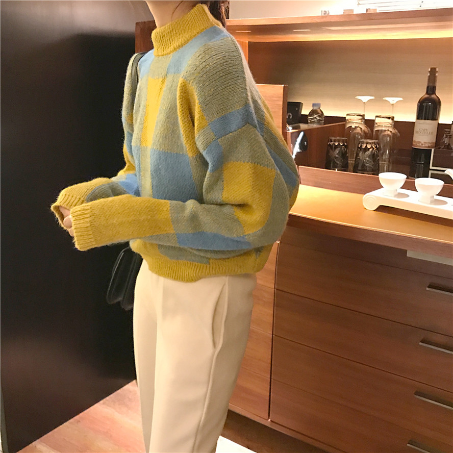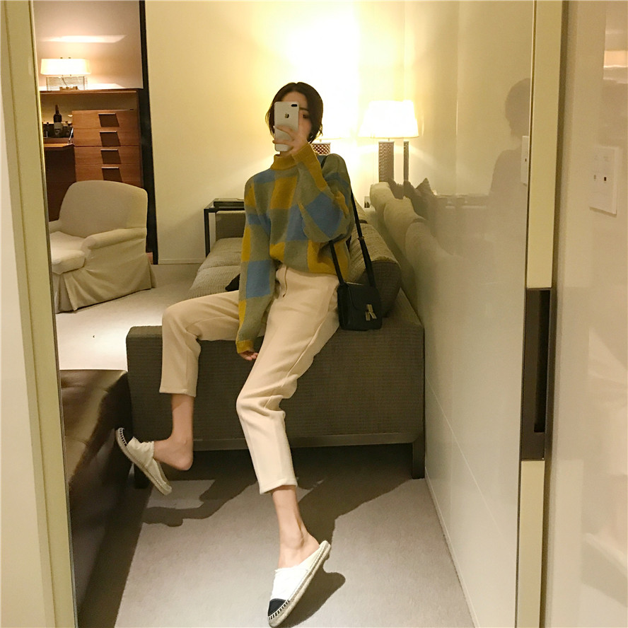 秋季套裝女時尚兩件套落肩寬松圓領毛衣+絲絨褲松緊寬松顯瘦長褲