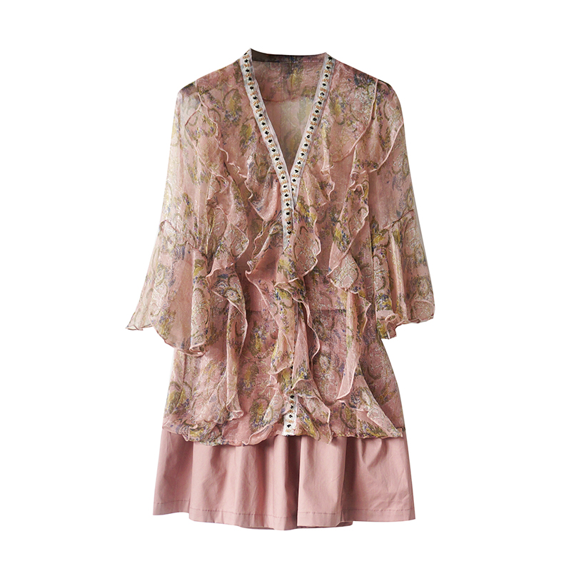 / 名媛氣質2018夏季小碎花印花雪紡衫上衣高腰闊腿褲短褲兩件套裝女