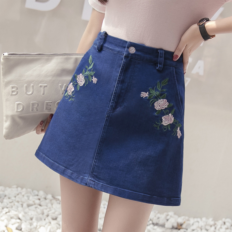 / 牛仔裙褲女夏高腰A字包臀牛仔半身裙女裙大碼裙子防走光刺繡半裙