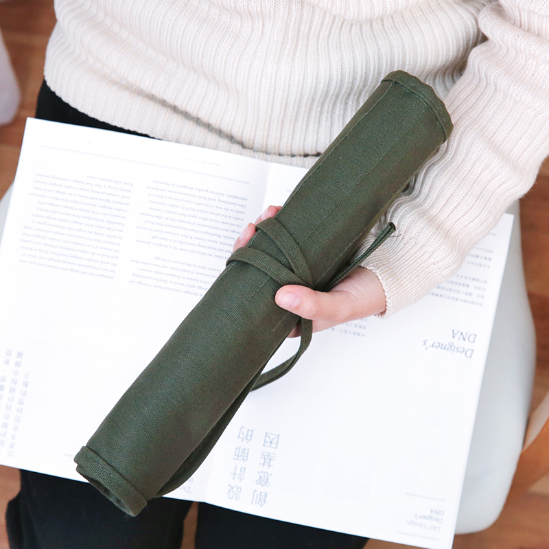 云木雜貨 簡約水粉畫筆簾 軍綠色便攜收納水彩筆油畫筆簾筆袋