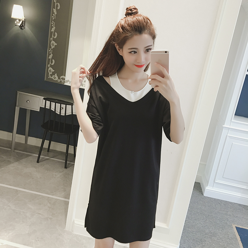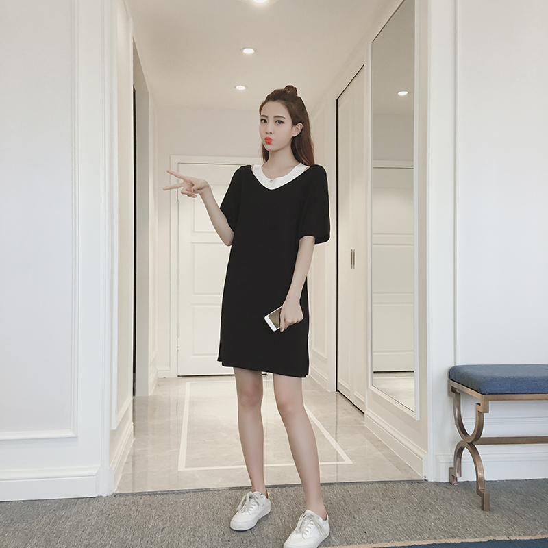 / 夏季新款女裝韓版中長款一字領T恤裙寬松顯瘦露肩短袖連衣裙